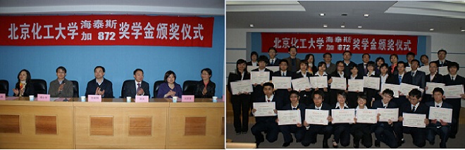 At 13: 30 on April 9, 2010, the award ceremony of the special scholarship of "Haitaisi Security Technology" was grandly held in the conference center on the first floor of beijing university of chemical technology Library.