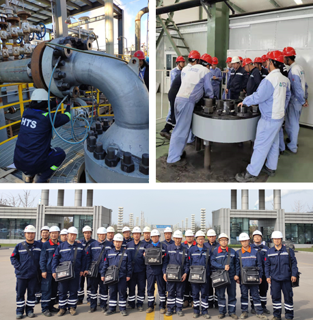 Our company provides flange constant torque fastening technical service for the core devices in a petrochemical 20 million tons/year refining and chemical integration project, and the bolts within the scope are fastened in place at one time, without hot tightening. The core key devices such as reactors are fastened and passed at one time by using tensioners, which saves time and effort and greatly reduces the commissioning cost. In the process of technical service, our company provides professional operation training, skill training and safety training to Party A's equipment management personnel and construction personnel of the construction party, and establishes an assessment system, strictly controls the on-the-job personnel, and lays a solid foundation for the safe and stable production of the device.